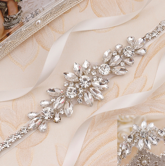 Handcrafted with precision, this belt features high-grade crystals in a floral and leaf motif arrangement, exuding classic sophistication. Set on a smooth satin ribbon, it ties delicately at the back, ensuring a comfortable, adjustable fit for all body types.